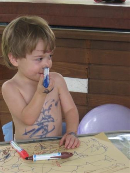 Becky's son Seth exhausted from watching his mom and aunts running through the obstacle course. You can see a little mud under his chin, such drama.